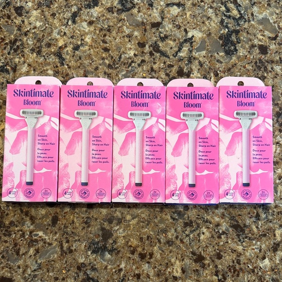 Experience a smooth shave with the Bloom Women's Razor. Designed for comfort and precision, this pink razor is perfect for your skincare routine. Set of (5) sealed razor handles + (10) cartridges.