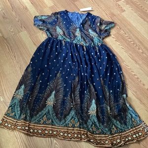 NWT BloomChic Art Deco Print Surplice Neck Midi Dress W/Pockets Size 22-24