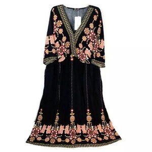 BloomChic Dark Blue Multicolor Floral Print 3/4 Sleeve Maxi Dress Womens Plus Size 26 NWT