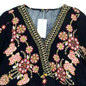 BloomChic Blue Multicolor Floral Print 3/4 Sleeve Maxi Dress Womens Size 26 NWT