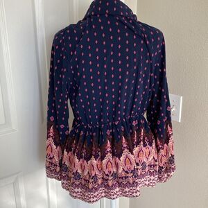 BloomChic Blue Patterned Long Sleeve Top Sz 10