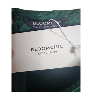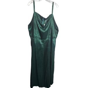 Dark green cami dress with adjustable straps. Unlined. Has a slit and a back zipper. Size 22-24 which is a 3X based on the BloomChic size chart