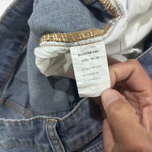 BloomChic Denim Shorts Womens 16 Blue Distressed Rolled Hem Mid Rise Stretch Poc