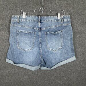 BloomChic Denim Shorts Womens 16 Blue Distressed Rolled Hem Mid Rise Stretch Pockets