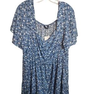 BloomChic Ditsy Floral Pocket Square Neck Shirred Ruffles Dress 2X, NWT