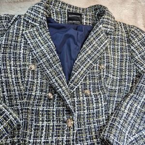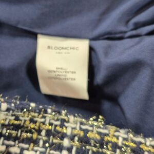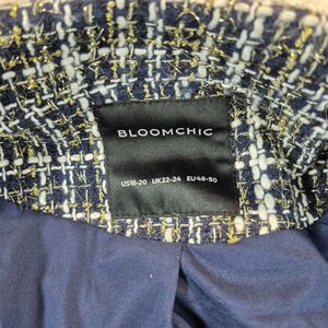 BloomChic Elegant Tweed Blazer with Gold Buttons Blue/White Metallic Gold 18-20