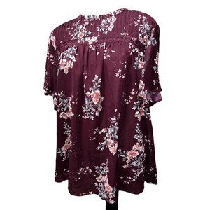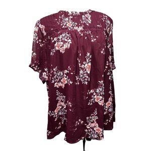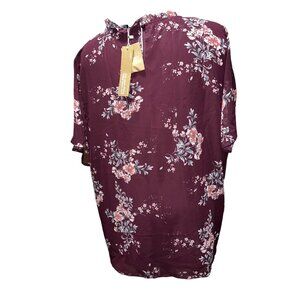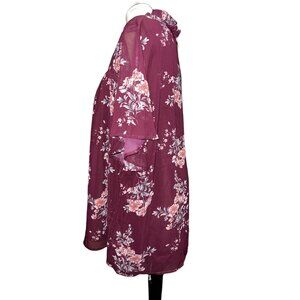 BloomChic Floral Ribbon Neck Sheer Flowy Blouse Sz 22/24 (3XL) Womens Burgundy T