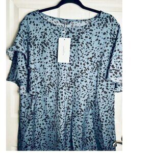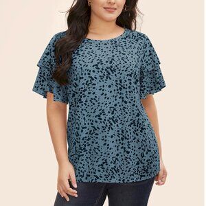 BloomChic Leopard Crew Neck Ruffle Tiered Short Sleeve Blouse 18-20 (2X) New