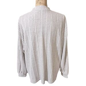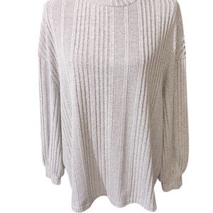 Elegant ribbed sweater in light gray. Ideal for cozy days. Good condition in a size 14-16. Laying flat pit to pit 24in. Length 24.5in.