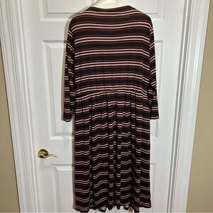 Stylish long sleeve dress. Features multicolored stripes and a soft stretchy fabric. Perfect for any occasion.