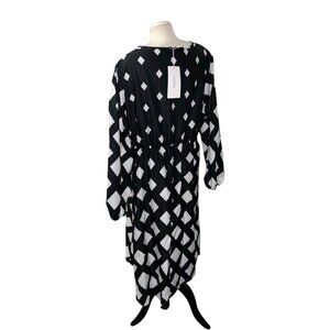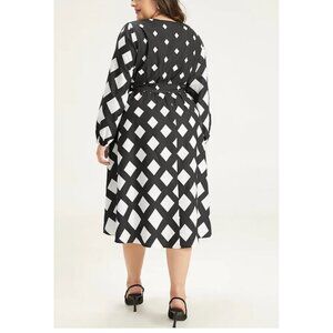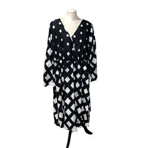 BloomChic NWT Geometric Print Belted Lantern Sleeve Dress Sz 22/24 (3XL) Black &