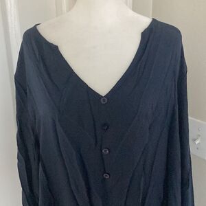 Navy blue Long blue sleeve shirt, button down front, sleeve can be buttoned to quarter sleeve, 26 in pit to pit, new with tags,