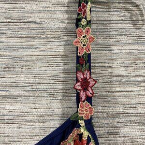 Color: Navy with multicolor floral embroidery