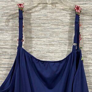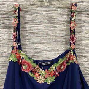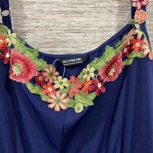 BloomChic Navy Midi Dress Floral Embroidered Straps Plus Size 22โ24 NWT