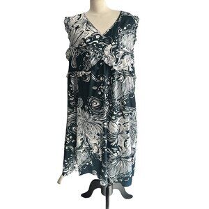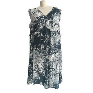 BloomChic Paisley Floral Ruffle Bust Cap Sleeve Dress Sz 22/24 (3XL) Teal Green