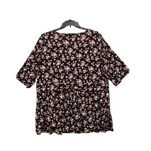 BloomChic V Neck double Peplum Top Black Floral Print Plus Size 26