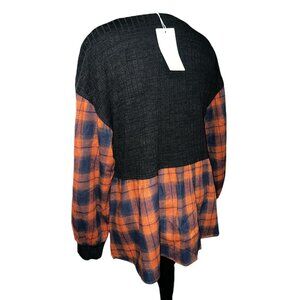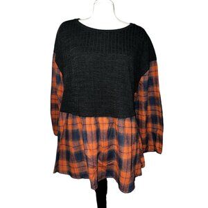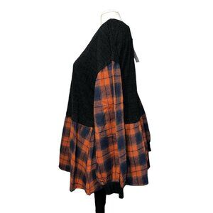 BloomChic Plaid Long Sleeve Crewneck Ruffle Hem Boho Babydoll Blouse Sz 22/24 Wo