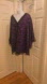 Chic purple blouse with black lace overlay. Perfect for elegant occasions. Crochet trim at V-neck, Bell Sleeves. Length: 31" from shoulder to hem. Stretchy, comfortable and dressy.