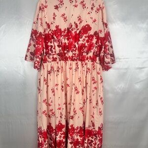 BloomChic Red and Pink Maxi Sundress with Bell Short Sleeves Size 18-20