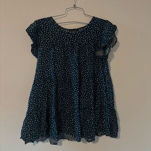BloomChic Ruffle Sleeve Top dark blue w dots pattern like new 14/16