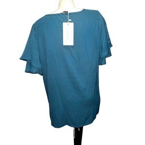 BloomChic Scallop Neck Double Tier Bell Sleeve Blouse Sz 12 (Large) Womens Teal