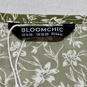 This ladies blouse from Bloomchic is brand new with tags, no noted flaws. Please see all photos as this is the exact garment you will receive. Measurements taken with item laying flat- armhole to armhole is 21", length from high point of shoulder to bottom hem is 28". Polyester/spandex blend fabric, machine wash cold.