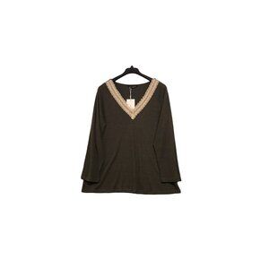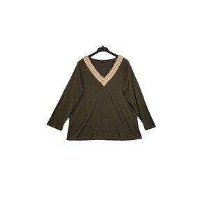 BloomChic Top Womens Plus Size 18 Rib Knit Lace Trimmed V Neck Tunic Lon…