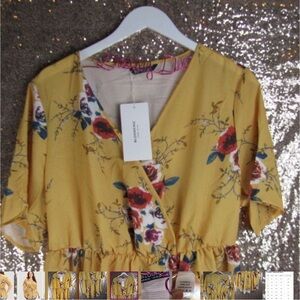 BloomChic Yellow Puff Sleeve Wrap Blouse