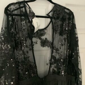 BloomChic plus size 22 Black Dress Sequin Sheer Mesh Long Sleeve NWT