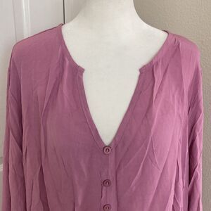 Cute Purple top, button down, Long Sleeve, dress up or down, can be buttoned to quarter sleeve, new with tags, 26 in pit to pit