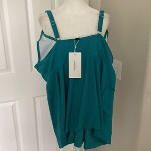 Cute teal swim top, padded bra, adjustable straps, ruffle in front, new with tags,