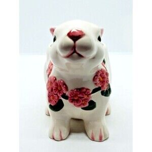 This Ceramic Bloom Rite Bunny Planter with Pink Flowers is used but in great condition. No chips or cracks we can see. A great addition to your Easter or spring décor. This little bunny would also be cute in a baby's room, great as a baby shower gift as well. Put small items in it for use with baby or put an Air plant in it. This cute bunny weighs 8 ounces and measures 5" long x 3.5" tall and the inside is 2.75" deep.