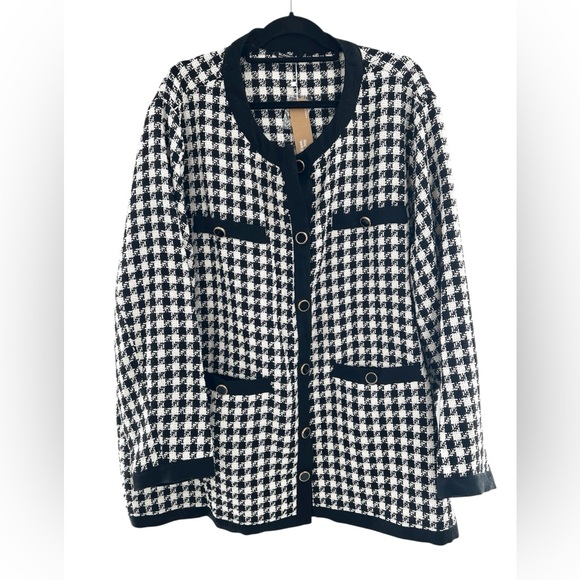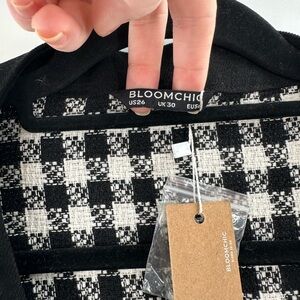 Bloomchic Black & White 90’s Houndstooth Plaid Knot Cardigan Blazer Jacket