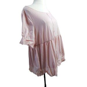 This Bloomchic Bloom Chic Size 22/24W Blouse is a must-have for plus size fashionistas. Its pink lace design exudes boho chic, perfect for any casual or semi-formal event. Brand new with tags. Scoop neckline, faux button front, soft knit fabric, short sleeves wtih boho embroidered accents and same trim around bottom, babydoll style