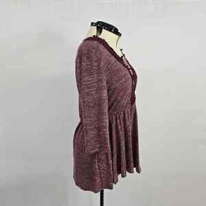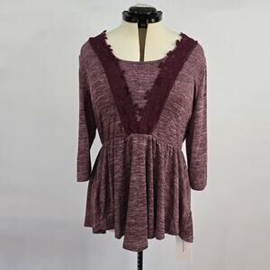 Bloomchic Blouse Women's 1X Plus Knit Round Neck Lace Long Sleeve Burgundy NWT