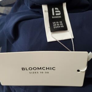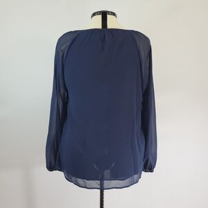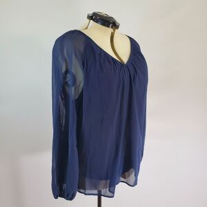 Bloomchic Blouse Women's 1X Solid Mesh Pleated Navy Long Sleeve Round Neck NWT