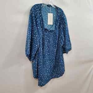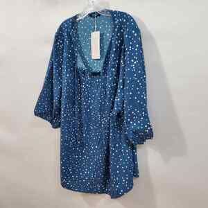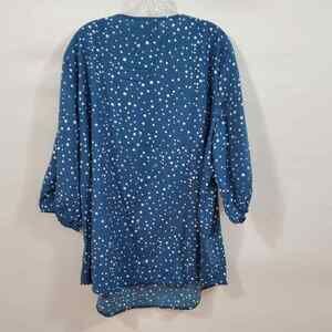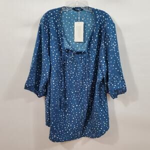 Bloomchic Blouse Women's 3X Blue 3/4 Sleeve White Polka Dot Tie Neck Plus NWT