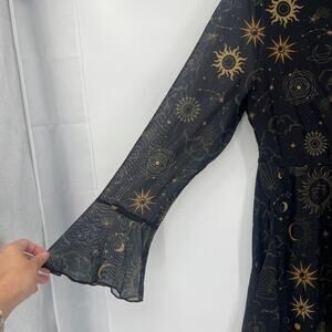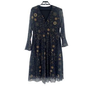 Black Bloomchic Celestial Mesh Midi Dress sz 14/16 Witchy Sheer Whimsigoth Halloween Sun Moon