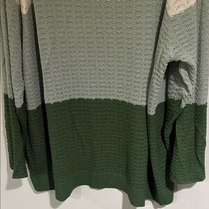 Stylish Bloomchic color block cream & green sweater. Lightweight and delicate. 31” long shoulder to hem. 29” pit to pit lying flat. Women’s size 26. Like new conditions only worn once.