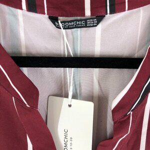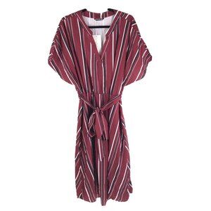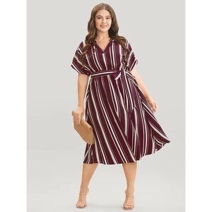 Bloomchic Contrast V Neck Dolman Sleeve Pocket Belted Midi Dress Burgundy 22-24