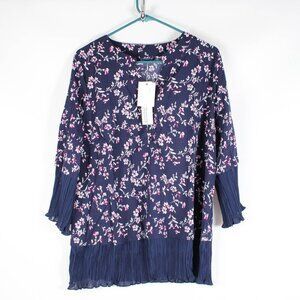 Bloomchic Ditsy Floral Pleated Cuffs Blouse, 1X, NWT