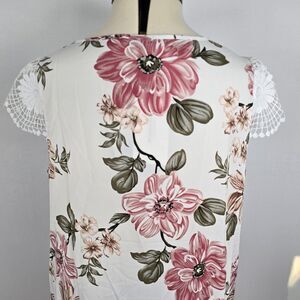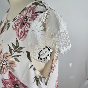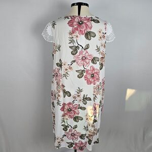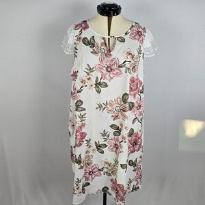 Bloomchic Dress Women 1X Lace Cap Sleeve Keyhole Neck Knee White Pink Floral NWT