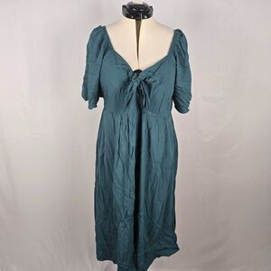 Bloomchic Dress Women's 1X Green On or Off Shoulder Knotted Midi Plus Size NWT