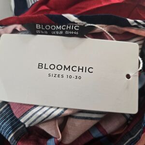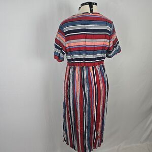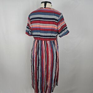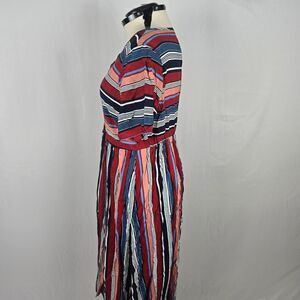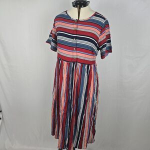 Bloomchic Dress Women's 1X Red Multiple Color Striped Contrast Short Sleeve NWT