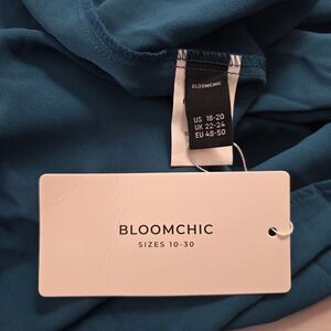Bloomchic Dress Women's 2X Blue Off - On Shoulder Fit & Flare Midi Shirred NWT