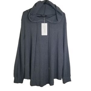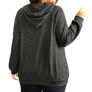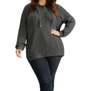 Bloomchic Gray Waffle Knit Hooded Drawstring sweatshirt