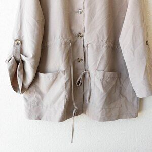 Bloomchic Lightweight Utility Jacket | Size 12 Taupe Button-Up Drawstring Coat