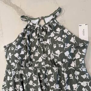 Bloomchic NWT Floral Cut Out Tankini Swim Top Women’s Size 28 Mint Green Padded