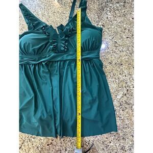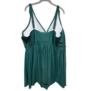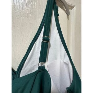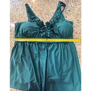 Bloomchic Size 26 Emerald Green Ruffle Trim Adjustable Strap Gathered Sculpt Waist Swim Dress Summer Resortwear Vacation BOHO Swimsuit