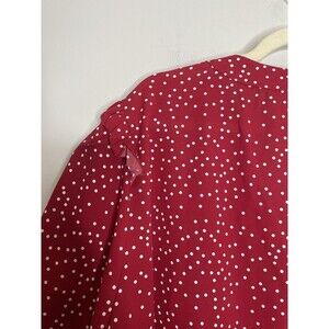 Bloomchic Shirt Womens Plus 22 Red White Polka Dot V Neck Ruffle Sleeve Chiffon
